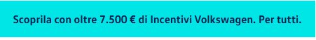 Offerta valida per cliente privato - Gli importi fin qui indicati sono da considerarsi IVA inclusa - Informazioni Europee di Base sul Credito al Consumo, Fogli Informativi e condizioni dei servizi accessori disponibili presso le Concessionarie Volkswagen. Salvo approvazione Volkswagen Financial Services. Volkswagen Financial Services è un marchio commerciale condiviso dalle succursali di Volkswagen Bank GmbH (p. IVA 12513730155) per il credito al consumo, per il leasing finanziario e per i prodotti assicurativi e Volkswagen Leasing GmbH (p. IVA 12549080153) per il noleggio e i piani di manutenzione. Il prodotto Progetto Valore Volkswagen è realizzato e distribuito da Volkswagen Bank GmbH.
